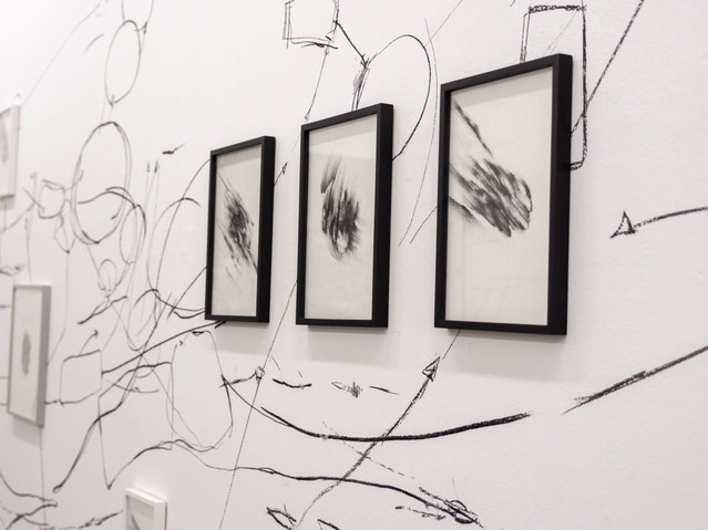 Aquí, todo es deriva: los mecanismos estallan, los acontecimientos son pausados, dibujar es una forma de hablarle al carbón sobre las horas y ansiedades humanas, mostrarle las nubes, los árboles y la tierra.